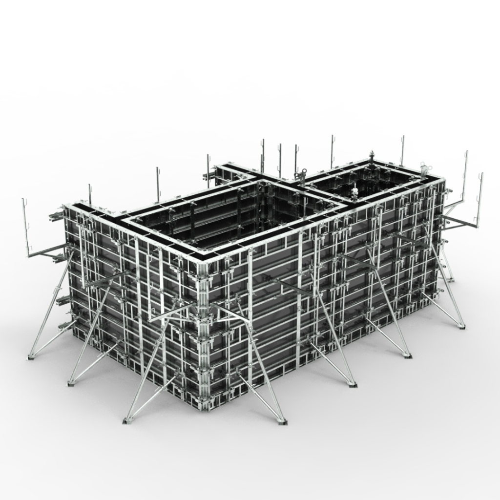 Опалубні системи для стін і перекриттів, стояки, модульні риштування, баштові крани та аксесуари: балки, триноги, головки, стяжні тяги, фанера, дистанційні елементи й втрачені елементи.
