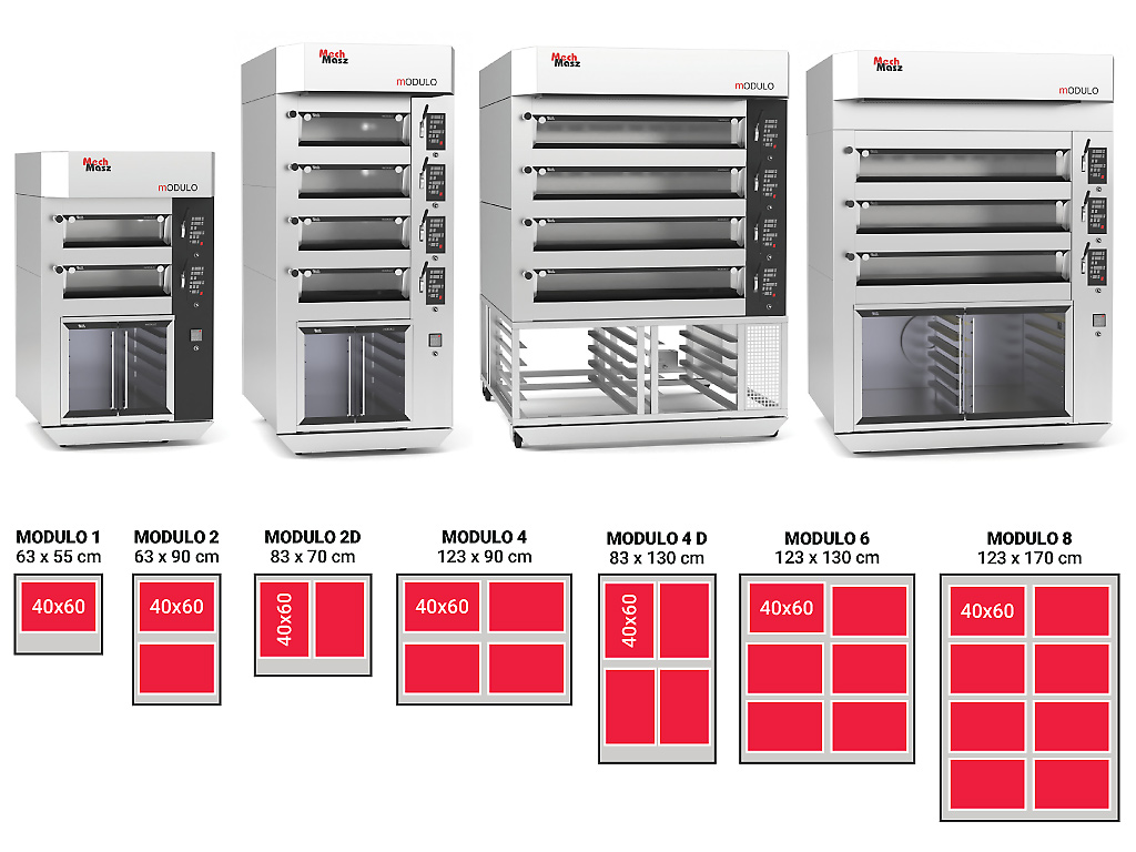 PPCR and MODULO ovens, proofing chambers, doughnut fryers, bread slicers, dividers, rounders, spiral mixers, planetary mixers, depositors, fillers, lifters/tippers, flour sieves, breadcrumb mills.