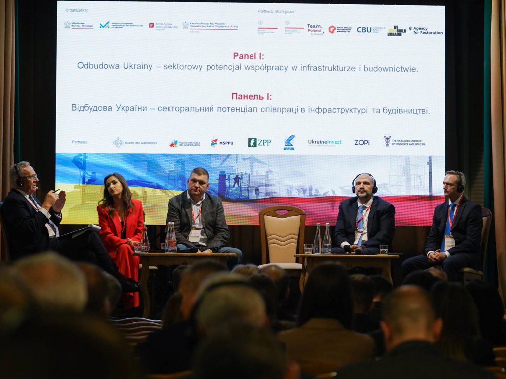 Pierwszy panel dyskusyjny poświęcony był potencjałowi współpracy sektorowej w infrastrukturze i budownictwie. Uczestnicy debatowali na temat planowania strategicznego rozwoju infrastruktury liniowej, potrzeb rynku pracy, kształcenia zawodowego oraz zastosowania nowych technologii w budownictwie. Wśród panelistów znaleźli się przedstawiciele Polskiego Związku Pracodawców Budownictwa, Konfederacji Budowniczych Ukrainy, Agencji Rozwoju Przemysłu S.A., Budimex S.A. oraz LAD Group i Narodowy Instytut Rozwoju Infrastruktury.