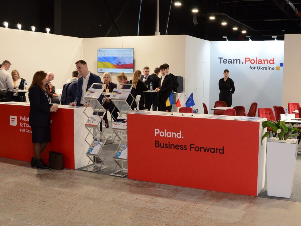 Stoisko Polskiej Agencji Inwestycji i Handlu podczas targów było również miejscem prezentacji instrumentów wsparcia dla polskich firm planujących ekspansję na rynek ukraiński, a także inicjatyw realizowanych w ramach współpracy instytucji skupionych wokół inicjatywy Team Poland for Ukraine.